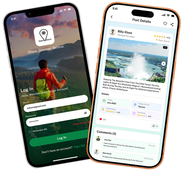 Been There is a social travel app that helps users discover destinations through peer reviews, ratings, photos, and interactive maps. It allows travelers to create a digital passport, share experiences, and connect with others.